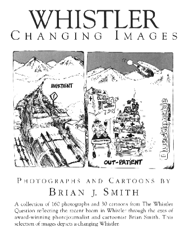 The Book Whistler Changing Images is a collection of 160 photographs and 30 cartoons from The Whistler Question reflecting the recent boom in Whistler through the eyes of award-winning photojournalist and cartoonist Brian Hydesmith. This selection of images depicts a changing Whistler. The soft-cover book is 140 pages long, mostly with one image per page. People who have an interest in Whistler or used to ski in Whistler have a particular interest in this sometimes retrospective view of 'the good old days'. It is equally relevant today and contains exciting ski photos as well as interesting images of life in Whistler. |